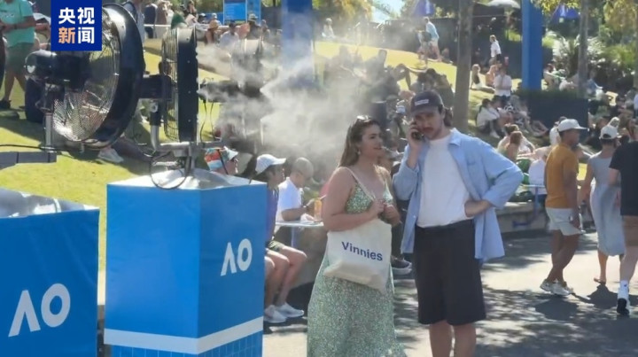 在天气的“炙烤风光”下,墨尔本公园内的好多现场不雅众皆聚在了水雾电扇和水雾门前降温,或大口吃起了冰激凌,在高温中恭候复赛。