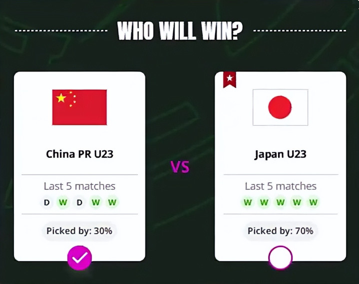 亚足联在决赛前公布了三项要道数据,直不雅展示了两队的实力对比和本届赛事的走势,在亚足联官网的决赛球迷投票走访中,70%的参与者合计日本队将会取胜,看好中国U23队的仅占30%,这一比例内容上一经超出了很多东谈主的意象,因为在半决赛对阵越南队之前,看好越南队晋级的比例曾高达93%