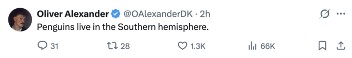 “科普一下:企鹅生涯在南半球。”↓