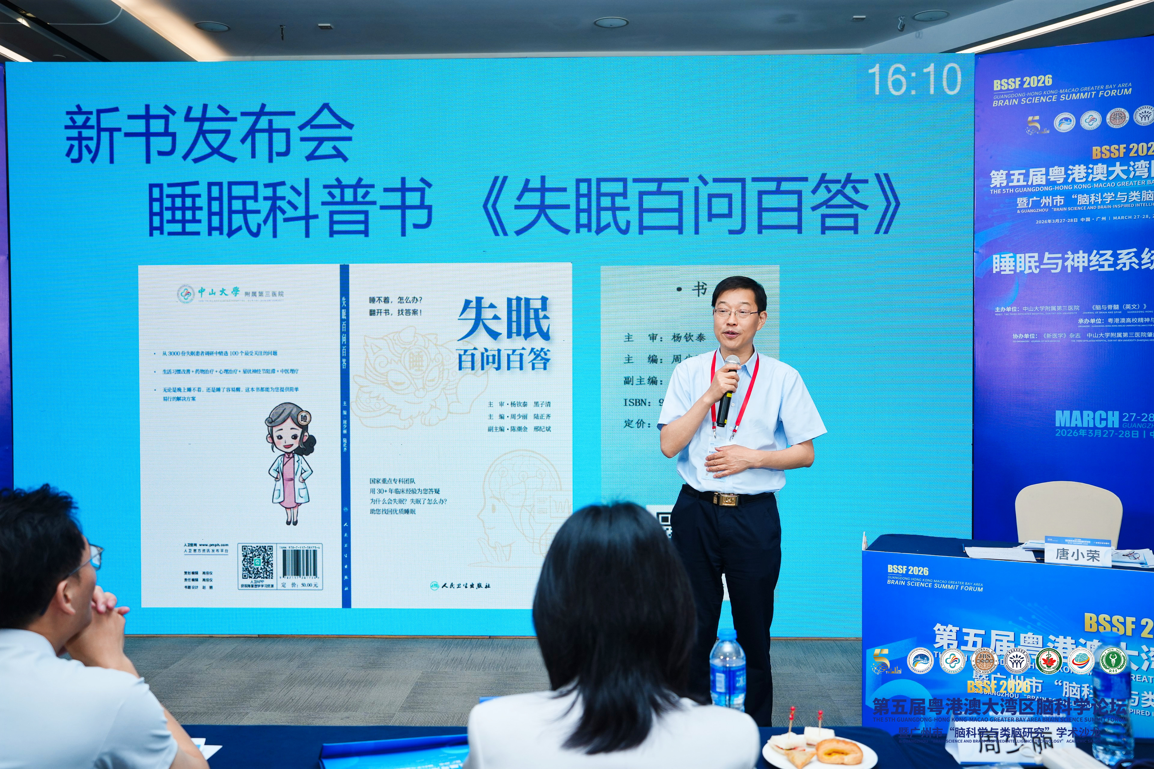 会上,《失眠百问百答》科普专著负责发布,图为中山三院神经内科主任陆正皆