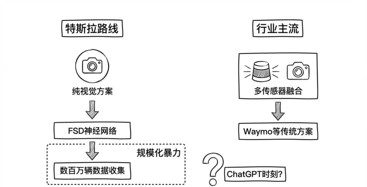 要是说Waymo代表了工程派的极致,那么特斯拉则代表了AI派的信仰。