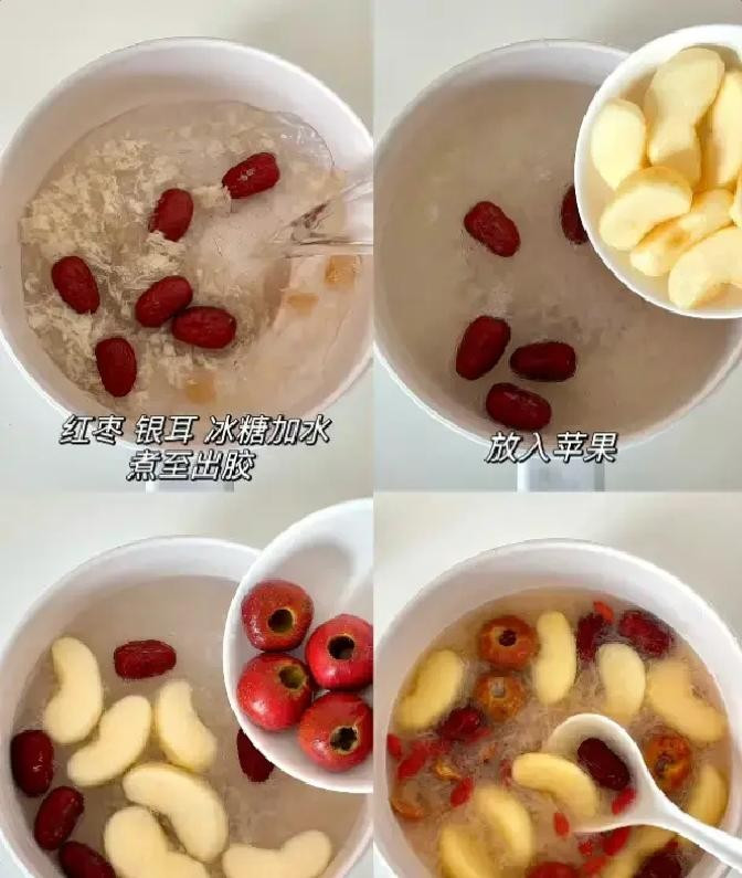 第一种是苹果山楂银耳羹,这是一个比较经典的甜品炖品,制作起来也不是绝顶贫穷,几颗山楂加一些苹果片,再加上提前泡发好的银耳,放入净水中小火炖煮,炖煮的经由中可以笔据个东谈主口味加入一些冰糖来调味,这谈羹吃起来很香甜,况兼还能滋补皮肤,补充气血,尤其在冬天干燥的时期食用收尾更佳。