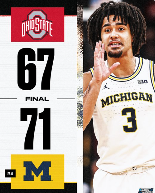 虎扑03月13日讯本日BigTen赛区(NCAA)锦标赛,密歇根大学以71-67打败俄亥俄州立大学,到手晋级下一轮。