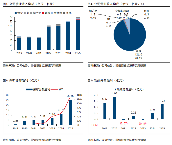 增利成分:(1)2025年上海金交所黄金现货均价798元/克,同比增241元/克,加价增利约12.5亿元;(2)2025年全年公司金精粉(含量金)及合质金销量6013公斤,同比增多829公斤,增利约4.6亿元。