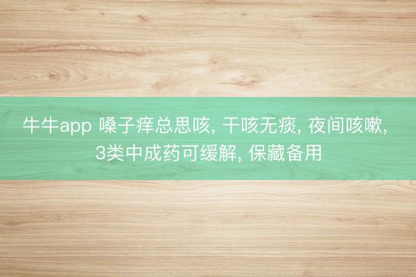 牛牛app 嗓子痒总思咳, 干咳无痰, 夜间咳嗽, 3类中成药可缓解, 保藏备用
