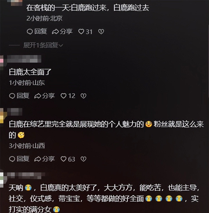 白鹿在东谈主皮客栈里完竣不荫藏我方的飞动嘉宾特权,钱没受到放纵就主动付钱,任务少就专心去营造氛围,牛牛这种有特权却不招东谈主悔怨的分寸感,比那些生硬装亲民东谈主设的明星要好太多了。