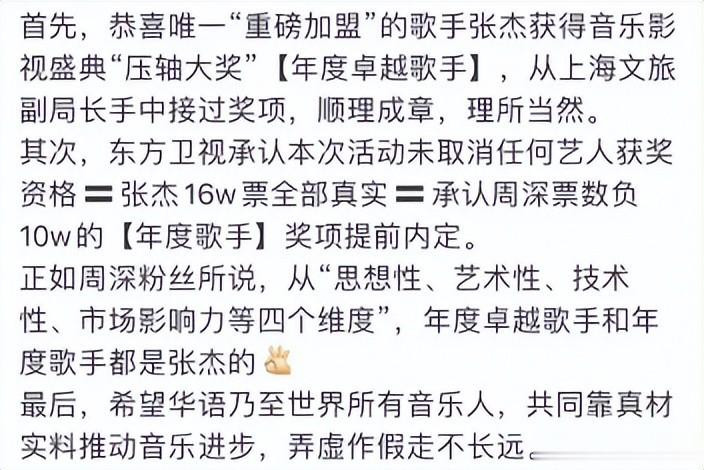 事情的缘故是这两位歌手都参加了归拢个音乐评比节目,而那时最大的奖项颁给了周深,而张杰则是取得了一个无关轻重的奖。