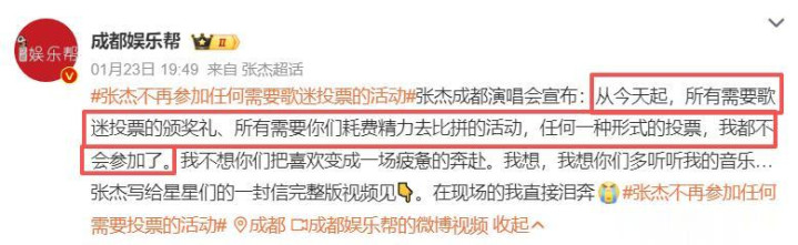 就在1月23日,张杰在成都演唱会秘书了一件令东谈主十分惊怖的事情,那便是他改日将不会参加任何投票式的行为。