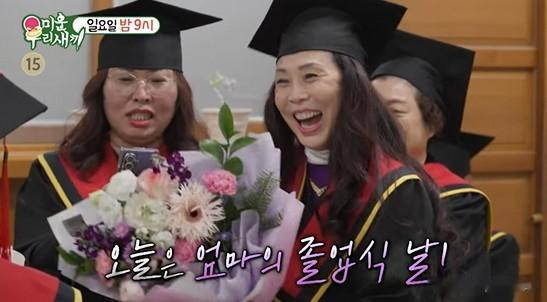 近日,综艺节目《我家的熊孩子》最新一期中,播出了尹施允陪母亲参预中学毕业典礼的现场。