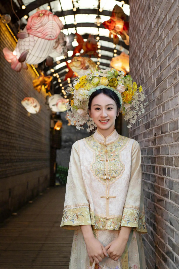 相片中,森蝶穿戴淡色国风拈花上衣搭配马面裙,孤单登科穿搭温婉动东说念主。搭配新鲜精熟的淡色簪花,看起来灵动显气质,确凿很好意思。扫数造型让东说念主嗅觉很有全球闺秀范,出落得风度玉立,一看即是妥妥的世家大密斯。
