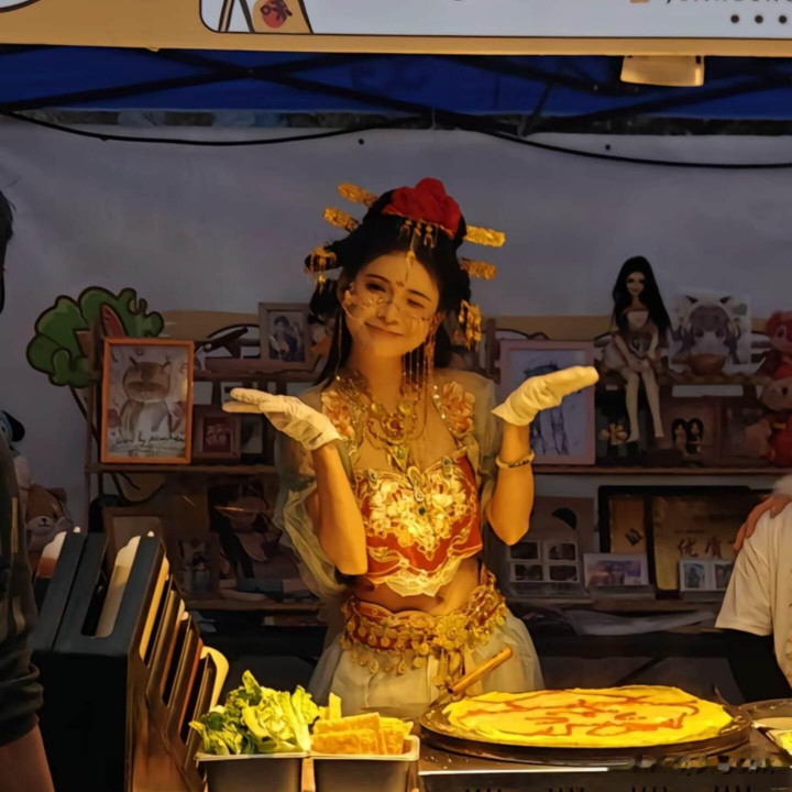 狗头萝莉所谓的在线下摆摊卖煎饼,而是一稔之前的cos着装,去卖煎饼。这么的一个新颖的样式,转眼收货了很高的热度,也引起了许多的东说念主质疑,合计狗头萝莉这种摆摊卖煎饼的样式即是博眼球,而且也不永恒。