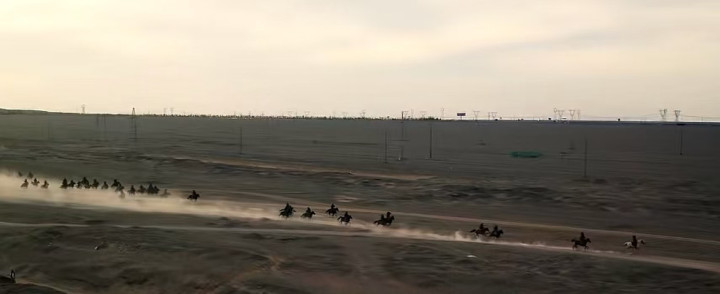当千军万马在戈壁上铺开,宇宙开朗,东谈主如蝼蚁,突显浊世的浩繁与个体的轻微,史诗感扑面而来。