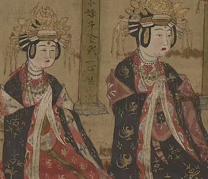 因为5代10国处于唐朝后期,是以孙太确凿造型已经比拟偏向唐朝格调的,好多齐是大秀的襦衫加襦裙。