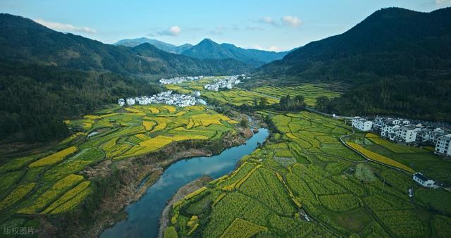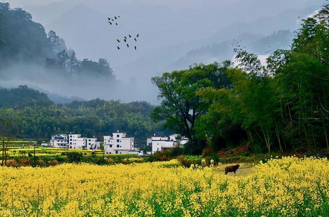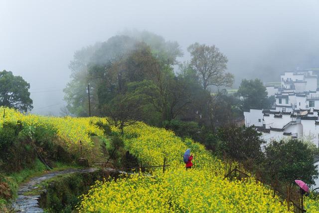春风十里,黄花遍野。婺源的春天,是被油菜花“焚烧”的。每年4月初,10万亩梯田油菜花干涉巅峰时代。白墙黛瓦的徽派屯子,被金黄色的花海包围,晨雾升空时,霏霏缭绕,花海连绵,像一幅逐步张开的水墨江南画卷。走在青石板路上,田间黄花摇曳,溪边垂柳依依,良善又诊治,时期在这里都慢了下来。