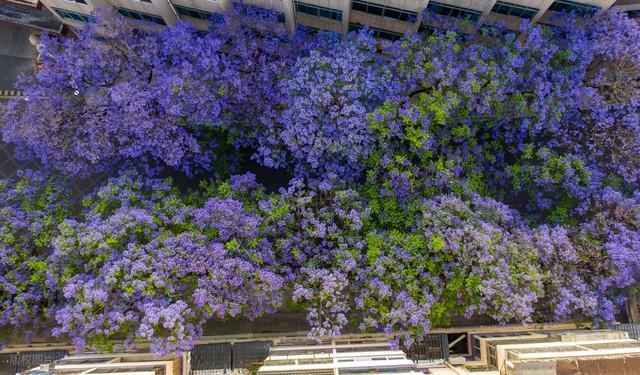 一起似锦,春色撩东说念主。4月的昆明,更是把“春城”二字演绎到极致。何况气温刚刚好,20℃出面,不温不火,恬逸到不思走!八街九陌的蓝花楹步骤灵通,紫雾漫街,搭配泄漏蓝天,顺手一拍都是绝好意思大片,满城鲜花任意盛放,连风里都飘开花香。