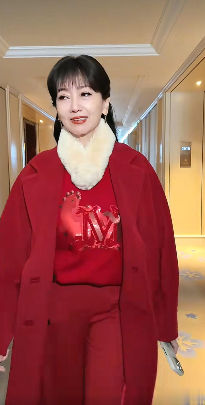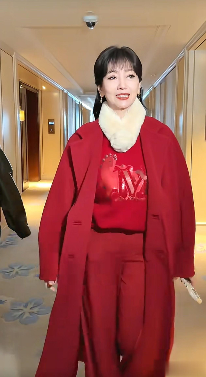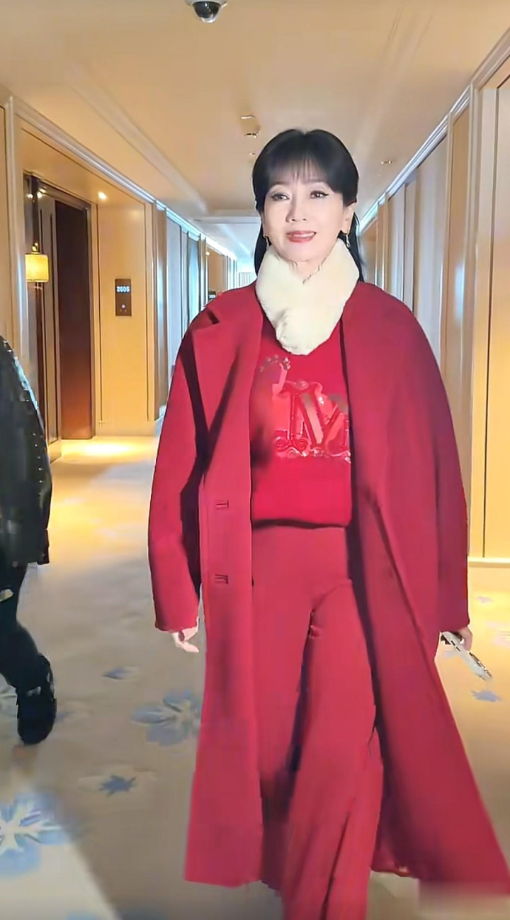抢庄牛牛app 72岁赵雅芝冬日穿搭: 小围脖+红大衣+阔腿裤, 喜庆又御寒, 好意思晕了