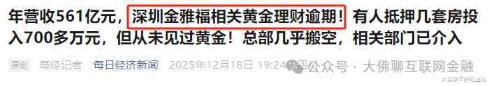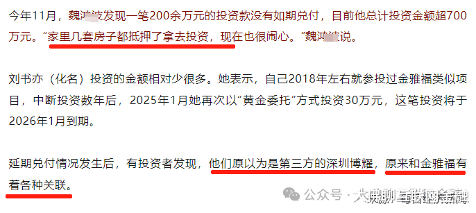 2025年年末,深圳金雅福相干的答理产物出现兑付问题,多名投资者无法提现。