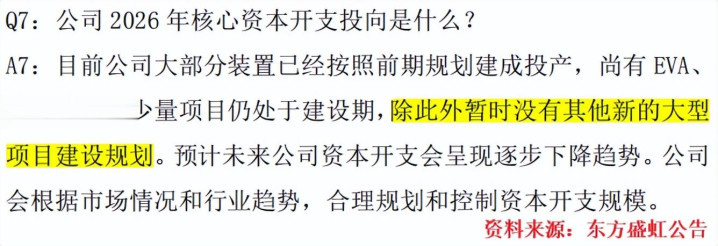 对此,公司2026年1月曾公开示意,当今其大部分装配已基本投产,惟一少许形貌处于树立期,瞻望夙昔其成本开支会逐渐下跌。“守住钱袋子”之后,东方盛虹有望进一步升迁其财务水平。