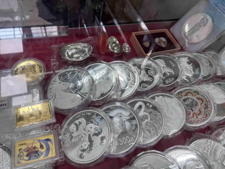 卢工邮币卡交往商场内的熊猫银币。新华财经