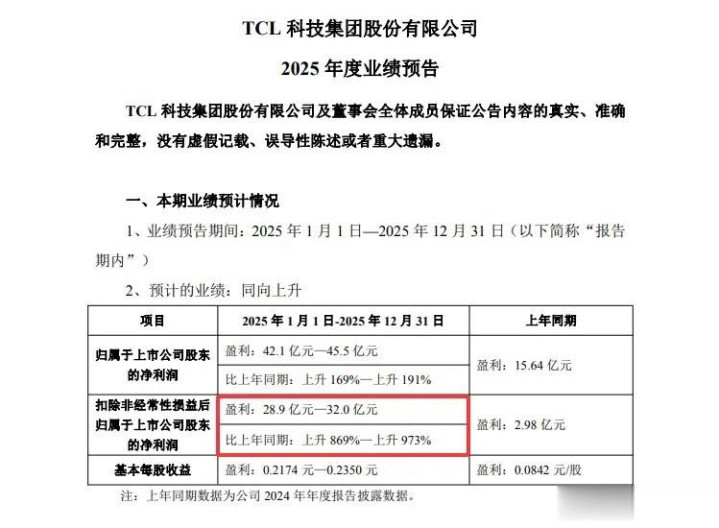 TCL科技的事迹预报清楚,瞻望2025年扣非净利润28.9亿至32亿元,同比增长869%至973%。四肢全球面板行业的热切参与者,TCL华星在2025年营业收入冲破1000亿元,净利润超80亿元,计算性现款流净额超400亿元。