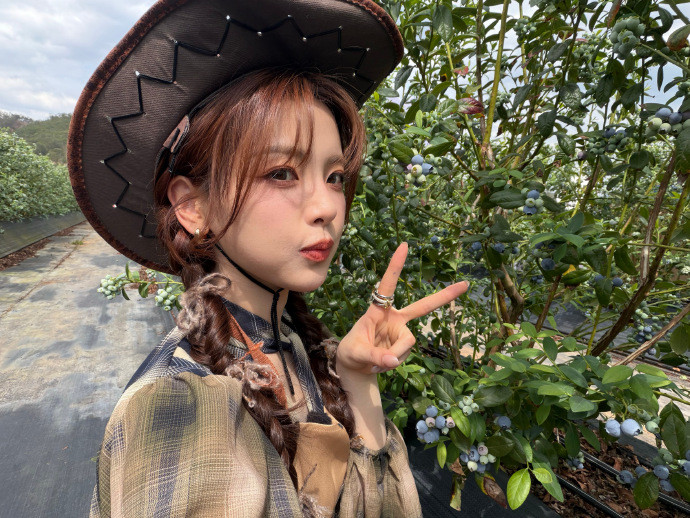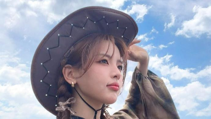 杨独特的格纹衬衫 + 牛仔帽,氛围感拉满