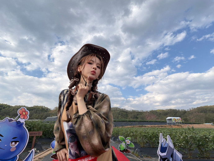 牛牛游戏app 杨独特的格纹衬衫 + 牛仔帽, 氛围感拉满