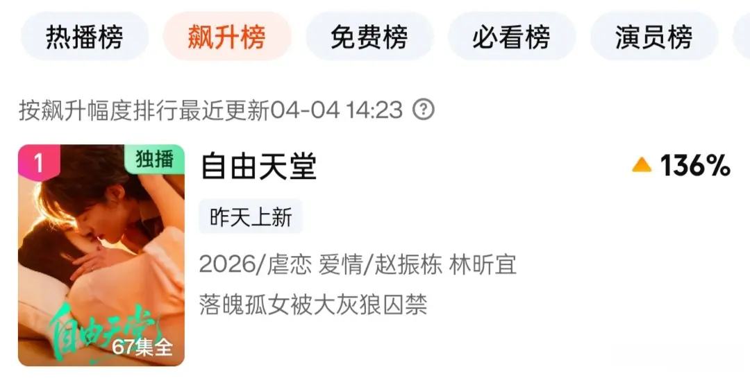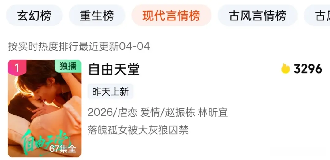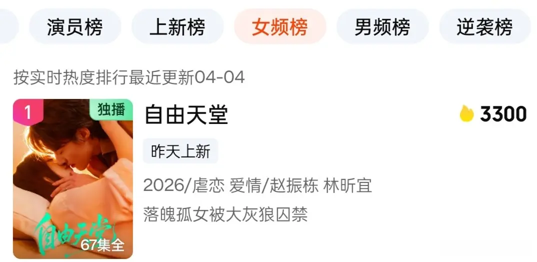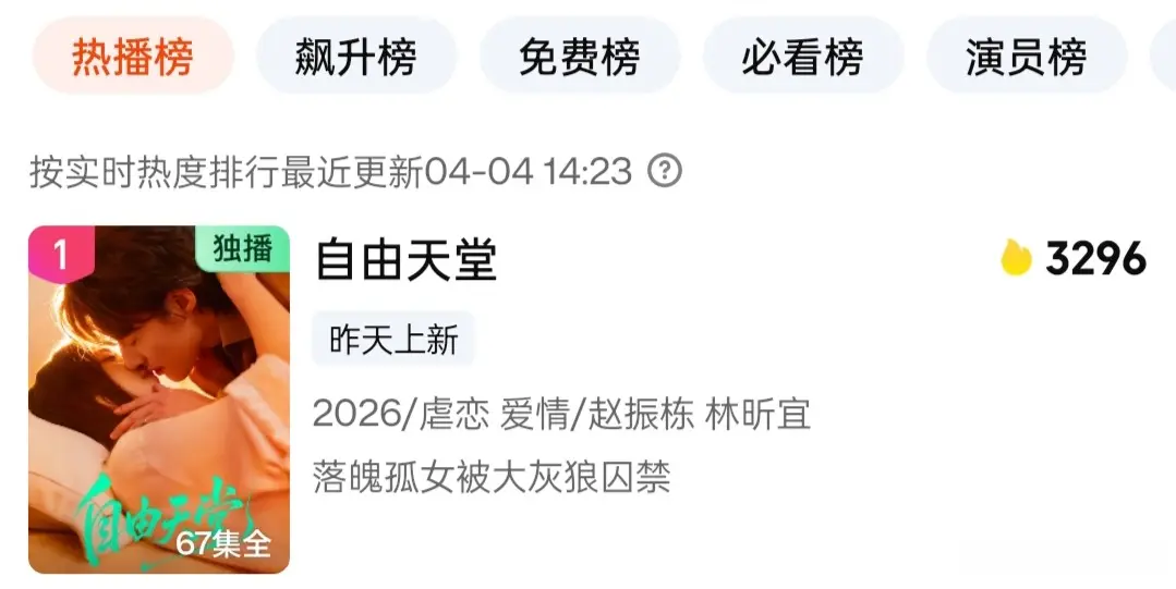 上线即爆火,不仅热度一起飙升,口碑也抓续发酵。不雅众纷纷评价:“赵振栋演的秦不逍太绝了,又疯又深情”“林昕宜把白切黑演活了,CP感拉满”“剧情又虐又上面,熬夜追完全集”。凭借超强质地与演员魔力,《解放天国》成为2026年4月风景级爆款。