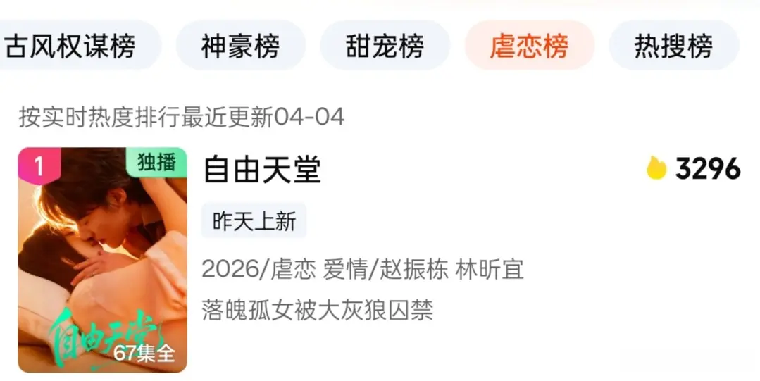 4月3日11:00,由赵振栋、林昕宜主演的王人市虐恋短剧《解放天国》在爱奇艺微戏院认真上线。