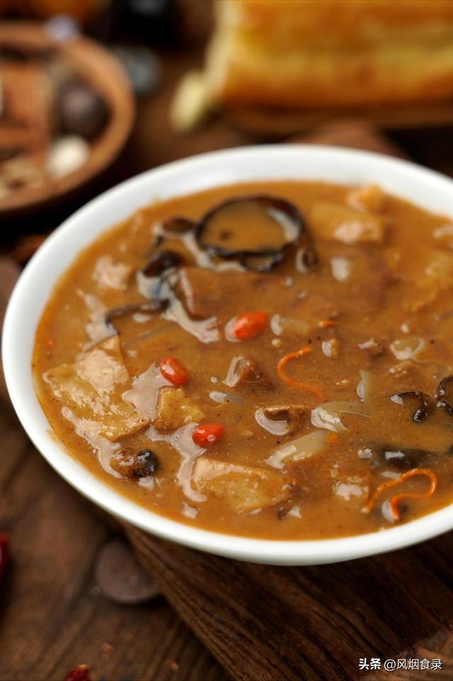 关节得用骨汤打底,洗面筋得洗出头筋,胡椒、辣椒、花椒等三十多种香料往里怼,终末粉芡勾芡,熬得更生挂勺。