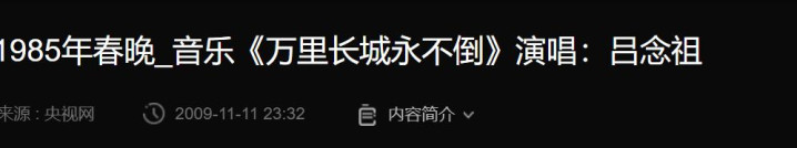 《1985年春晚_音乐〈万里长城永不倒〉演唱:吕念祖》(央视网)