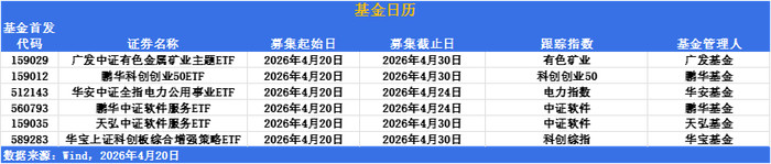 ETF刊行阛阓方面,6只居品明日集会开募,掩盖有色矿业、科创创业、电力公用奇迹及软件干事等多个赛谈