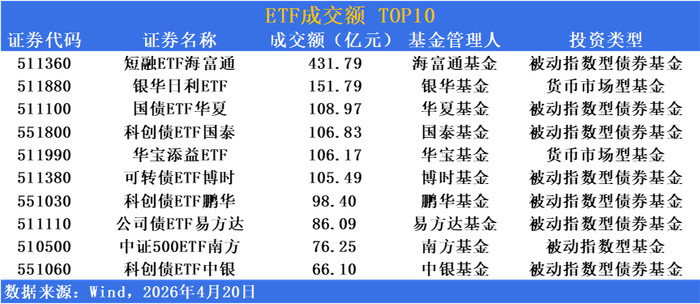 短融ETF海富通(511360)单日成交超431亿元稳居成交榜榜首,四肢短久期信用债器具捏续担当资金搞定利器,受益于阛阓资金面宽松布景下的现款搞定需求升温。