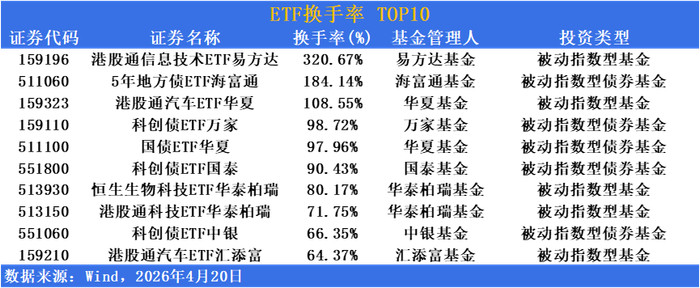 活跃度方面,短融ETF成交超431亿位居榜首,港股通讯息时期ETF换手率超320%高居榜首