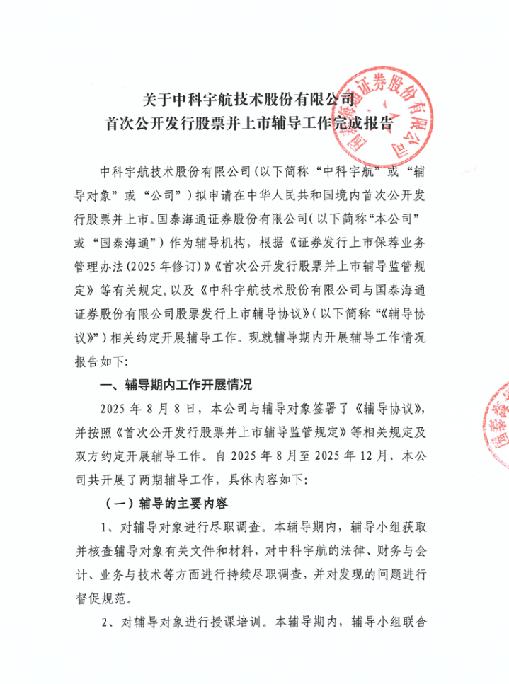 IT之家1月24日音书,证监会官网披露,交易航天公司中科宇航近日已完成IPO开导,该公司于1月16日参预开导验收经由,其IPO开导机构为国泰海通证券。