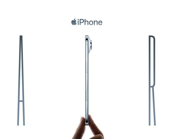 遴荐eSIM技能,莫得实体SIM卡槽,分量仅165克,厚度仅5.6毫米,是苹果迄今最薄iPhone。