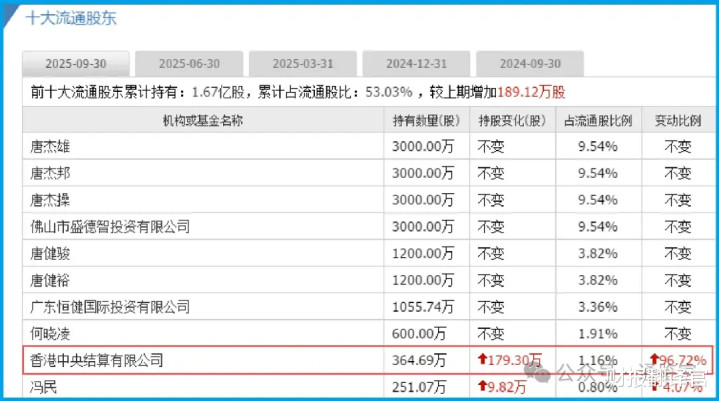 但紧接着,一个雄壮的矛盾点出现了:就在团结份诠释里,代表北向资金的香港中央结算有限公司,合手股暴增了97%。
