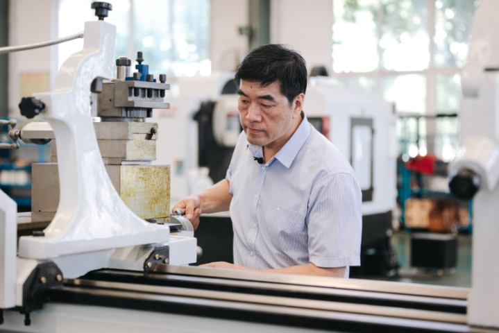 枣庄学院东说念主工智能学院陶冶赵峰在机床坐褥车间操作开荒。新华社发