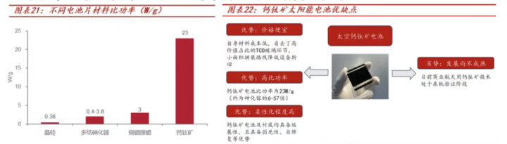 晶硅太阳能电板升沉率低、砷化镓太阳能电板老本高,于是行业将眼神聚焦至钙钛矿电板上。据了解,钙钛矿电板具有廉价、高比功率等上风,有望成为我国卫星太阳翼新有野心。有分析师指出,钙钛矿有望措置核肉痛点,成为我国太阳翼下一代主流时候道路。