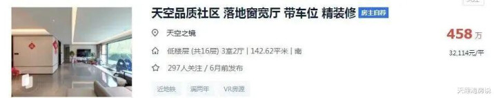 挂牌单价最低的一套二手房,小高层143平米一楼单价32114元/平米。