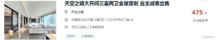 其中,小高层127平米挂牌价更高,最低得475万,单价37399元/平米。