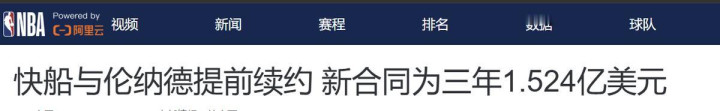 NBA中国官方网站《伦纳德与快船终了提前续约 三年1.524亿好意思元》
