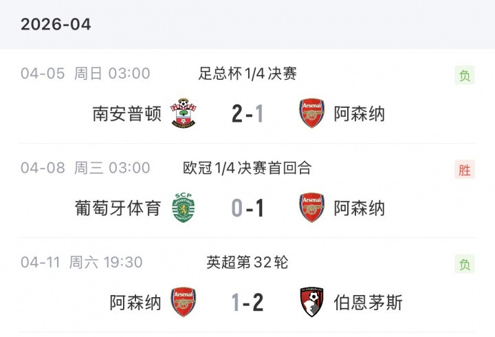 此外,获取月最好主帅后的第三天,阿森纳就在足总杯爆冷不敌南安普顿出局。